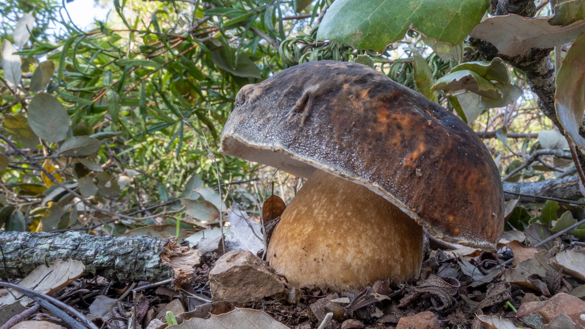 Bronzino o “porcino nero”: così viene chiamato da tutti il Boletus aereus, un bellissimo fungo porcino che cresce in simbiosi esclusivamente con le latifoglie, ed è la specie più amante dei climi mediamente caldi fra i porcini presenti in Italia. Il suo ambiente d’elezione sono i boschi di querce, con preferenza per cerri, roverelle lecci e querce da sughero, ma anche roveri e farnie. Tuttavia, questo fungo vive in simbiosi anche con il castagno, il carpino nero e con gli arbusti di cisti, un vero e proprio alleato di molte latifoglie. Raro, quasi introvabile in faggeta e in boschi puri di conifere, Boletus aereus è uno di quei funghi che vengono definiti “termofili”, ovvero che amano i climi temperati, e per questo motivo lo si può rinvenire raramente nei boschi alpini, a eccezione di qualche castagneto o bosco misto di roverella e carpino situati in microclimi particolari. La possibilità di trovarlo aumenta progressivamente scendendo verso Sud, dove in certe annate con autunni dal clima mite, tappezza letteralmente i boschi di querce, sia sempreverdi, sia caducifoglie. Questo accade con più frequenza sul litorale tirrenico, in Toscana, Umbria, Calabria, Sicilia e Sardegna. Si tratta quindi di un fungo piuttosto riservato che, di solito, si mimetizza senza farsi notare nel chiaroscuro del bosco, magari proprio in quell’angolino tra il ginepro e una roverella. Spesso, per rendere ancor più difficile il compito di scovarlo, lascia intravedere solo una piccola parte del cappello, tenendo il resto ben nascosto sotto le foglie. Forse è proprio perché ama così tanto “giocare a nascondino” che è uno dei funghi più ricercati dagli appassionati.
