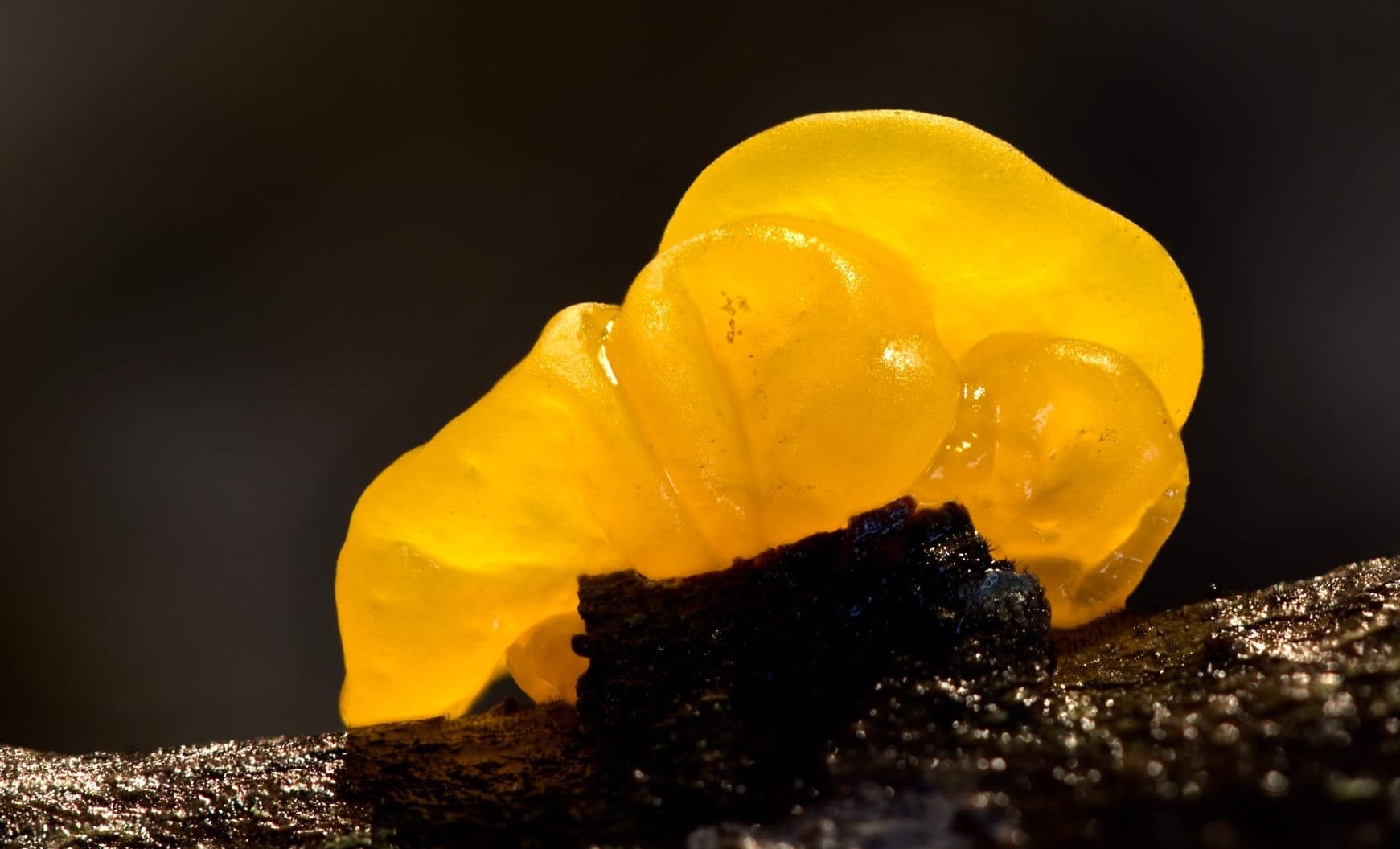 Infine, il bosco di "Halloween" ospita anche altre specie fungine bizzarre, come alcune "gelatine” fungine che sembrano uscite da una scenografia fantastica: Tremella mesenterica, ad esempio, appare come una massa cerebriforme giallo-oro, spesso sui rami morti di latifoglie, dove parassitizza altri funghi lignicoli. Può rigonfiarsi improvvisamente dopo un temporale, dando l’impressione che qualcosa di vivo e vischioso sia affiorato dalla corteccia. La sua apparenza liquida, tremolante, quasi ectoplasmatica, che talvolta suscita una certa inquietudine visiva, è in realtà un adattamento funzionale: il corpo fruttifero è costituito da un tessuto ifale elastico e fortemente idrofilo, capace di resistere a forti oscillazioni ambientali e di mantenere l’attività riproduttiva in condizioni favorevoli.