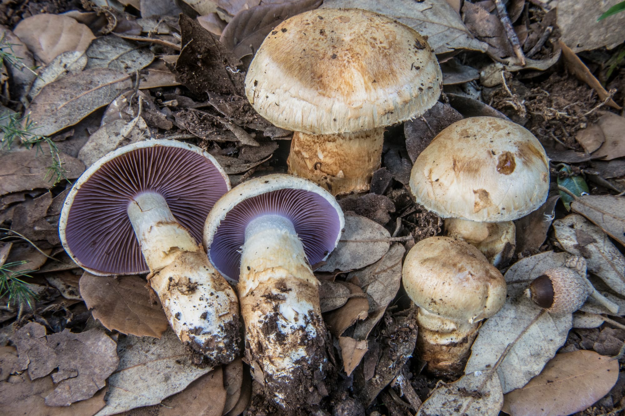 Dal punto di vista micologico, le macchie che hanno avuto il tempo di strutturarsi, come le leccete stabili, le sugherete consolidate e le pinete mediterranee mature con un sottobosco continuo di corbezzolo, erica, mirto e cisto, restano il contesto principale per le grandi produzioni di simbionti "classici", come i porcini mediterranei (Boletus aereus e Boletus aestivalis), i leccini (Leccinellum lepidum), gli ovoli (Amanita caesarea), i finferli (Cantharellus alborufescens) e molte altre specie da raccolta o da studio. Qui, la continuità del soprassuolo, l’ombreggiamento e la lettiera spessa garantiscono un suolo più umido, protetto dal vento e in grado di sfruttare a lungo le piogge autunnali. Ciò non significa, però, che le fasi giovanili o post-incendio siano povere di funghi; al contrario, nei primi anni successivi al disturbo, spesso compaiono specie pionieristiche molto interessanti, sia saprotrofiche sia ectomicorriziche, legate alla ricolonizzazione del suolo e ai rapidi cambiamenti della lettiera. Nelle garighe basse e nei popolamenti arbustivi più recenti, la comunità fungina non è necessariamente "più povera", ma diversa: meno centrata sui grandi simbionti tardo-autunnali tipici delle leccete mature e più orientata verso specie legate ai cisti, ai pini giovani, al legno bruciato e alla dinamica di ricostruzione della macchia.