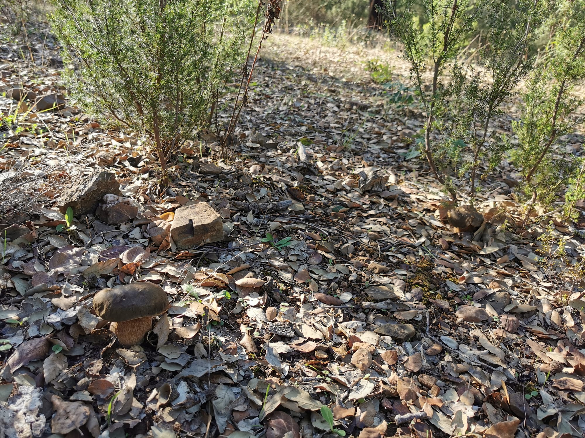 Da un punto di vista pratico, per chi vuole leggere questi ambienti con occhio micologico, la conseguenza è semplice: ha poco senso aspettarsi buttate significative in macchia dopo il primo rovescio di fine estate, a meno che le piogge siano abbondanti e il clima non troppo torrido. Conviene osservare la sequenza degli episodi piovosi, la risposta della vegetazione e lo stato della lettiera. Quando la lettiera di leccio, prima rigida e scricchiolante, torna morbida e leggermente compatta sotto i passi, quando compaiono i primi muschi attivi sui tronchi e sulle pietre ombreggiate, quando la macchia “profuma” di acqua assorbita e non solo di terra bagnata in superficie, allora le condizioni per una fruttificazione consistente sono davvero in atto. In questo scenario, alcuni funghi eduli assumono un significato particolare. Il porcino nero, Boletus aereus, è il simbolo stesso delle leccete e delle sugherete mediterranee: preferisce boschi maturi, suoli ben drenati ma con una lettiera abbondante, ed è tipicamente tardivo. Comparsa e abbondanza variano molto da zona a zona, ma il tratto comune è la sensibilità al quadro idrico complessivo dell’autunno. Il porcinello d'inverno, Leccinellum lepidum, si inserisce nello stesso contesto, spesso in stazioni leggermente più aperte e aride, ma con una spiccata capacità di fruttificare anche a temperature relativamente basse, quando altri boleti sono scomparsi, con preferenzialità per il semestre novembre-aprile.